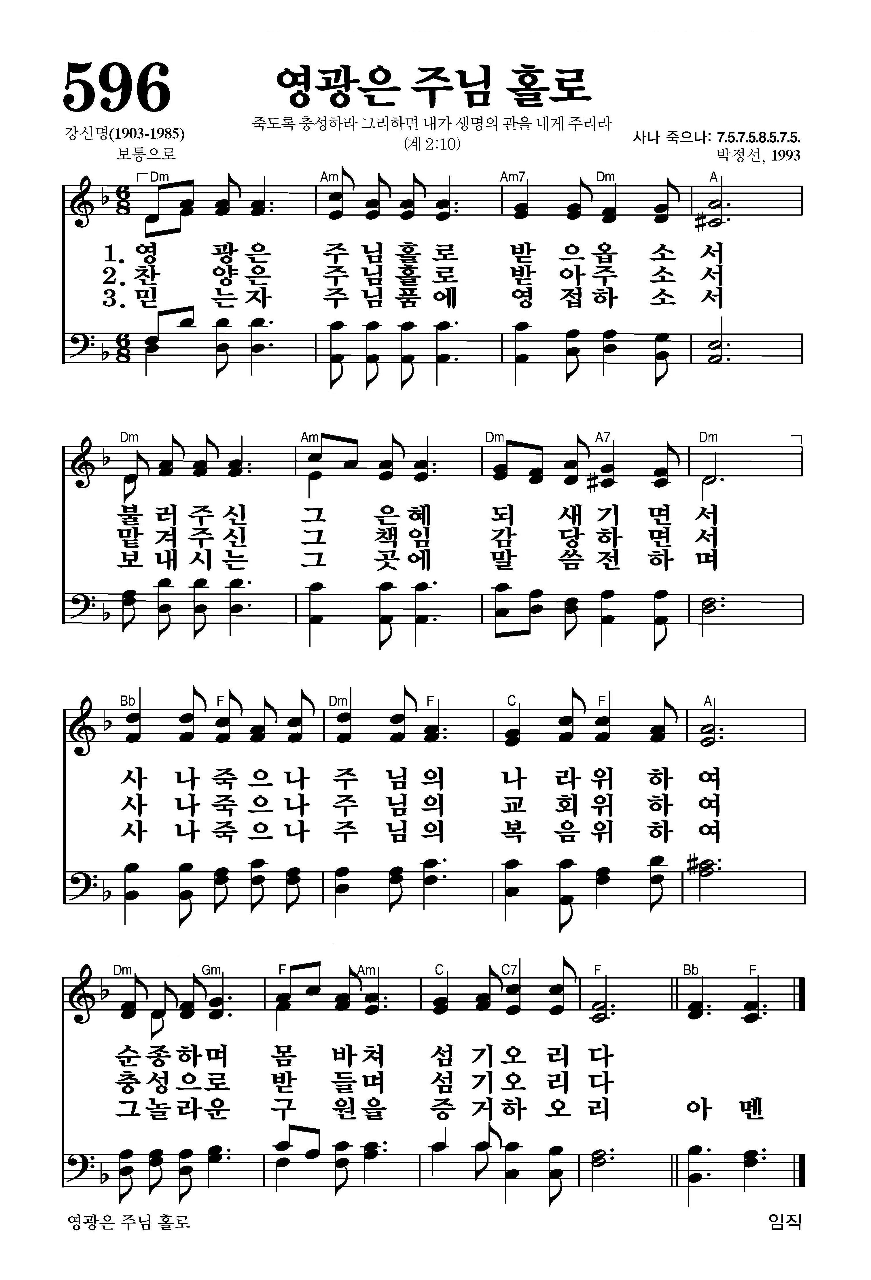 596. 영광은 주님 홀로
